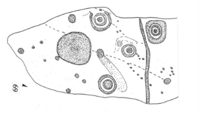Illustration of a complex cup-and-ring-marked boulder, Eel Hill North 1980-1997