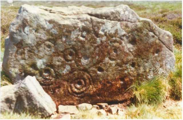 Rock art on an upstanding boulder, Washbeck Green, Barningham Moor 1980-1997