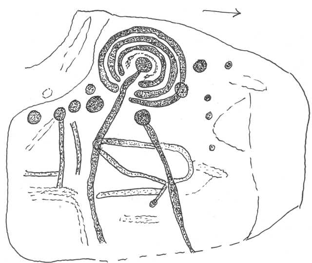 Illustration of a cup-and-ring-marked boulder, Scale Knoll, Barningham Moor 1980-1997
