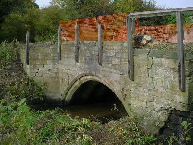 A bridge is first mentioned on this site in a charter dating to the late twelfth century. The present bridge probably dates to around 1335, when it may have been restored following destruction by raiding Scots. It was also repaired in 1616. It carried the main road until 1930.
