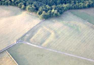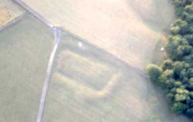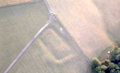 Moat of probable Medieval date still visible as slight earthworks. (19)