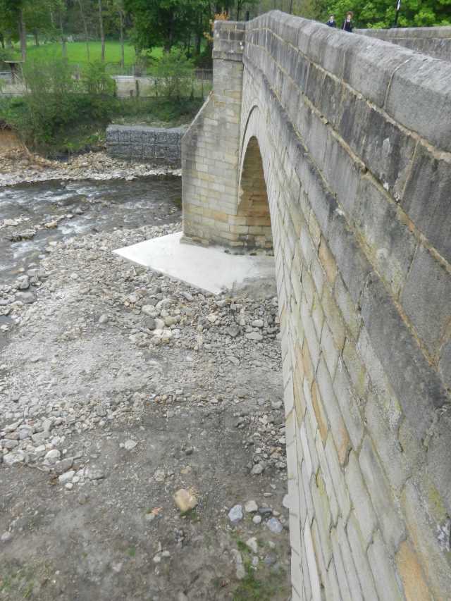 The ancient bridge at Frosterley was destroyed in the 1771 flood, and was replaced by the present bridge in 1813. It was designed by Bonomi and has three arches, with the piers protected by pointed cutwaters.
