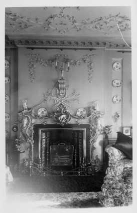 Coxhoe Hall interior. Ornate plasterwork fireplace c.1910