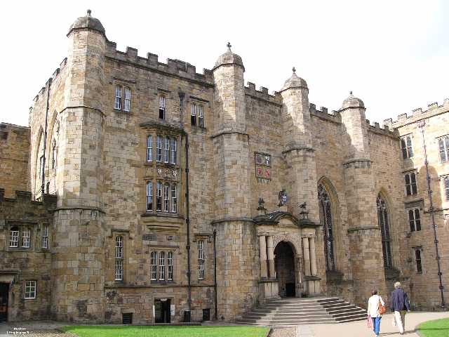 This is the west range of Durham Castle - including the kitchen and hall with two staircases. It is now a college of the university. The undercroft of the hall was built in the 11th century and the hall dates to the late 13th century and was extended southwards c. 1350. The staircase in front of the kitchen dates to the 13th century, and the grand staircase was added in 1662 for Bishop Cosin. There are later 19th century alterations. This is a Grade I Listed Building, thus protected by law.