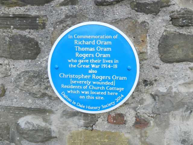 Photograph of plaque at St. Andrew's Church, Dalton-le-Dale 2016