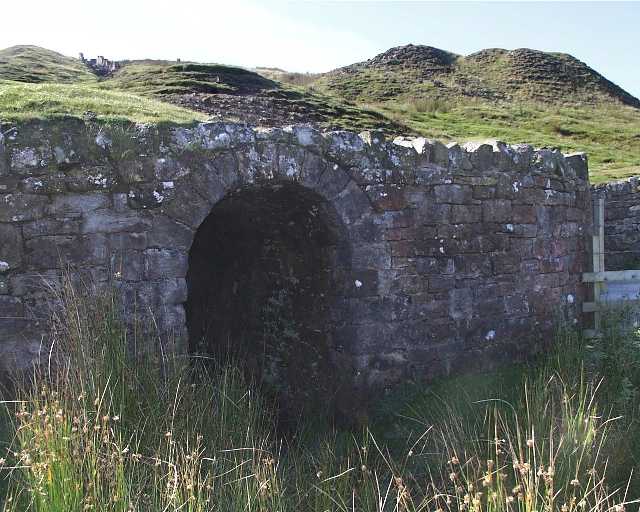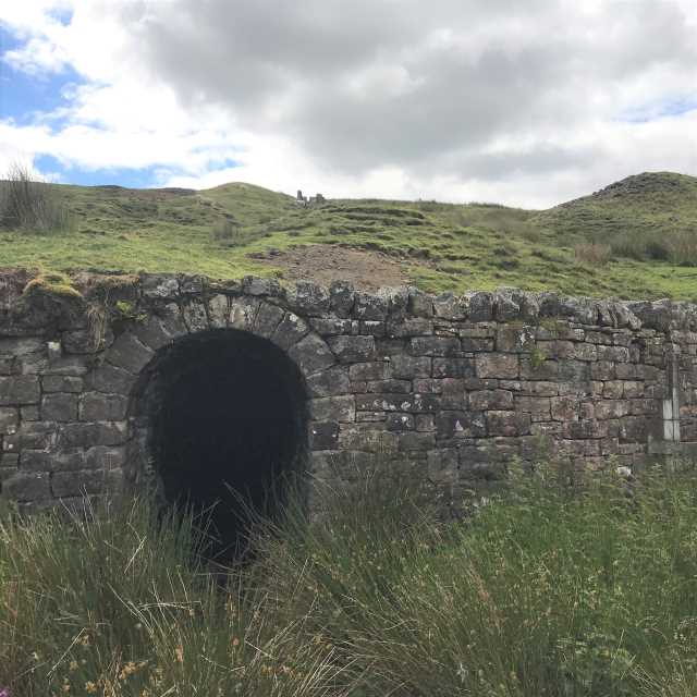 Image of Coldberry Mine arch, with spoil heaps in background. 11-Jul-2020