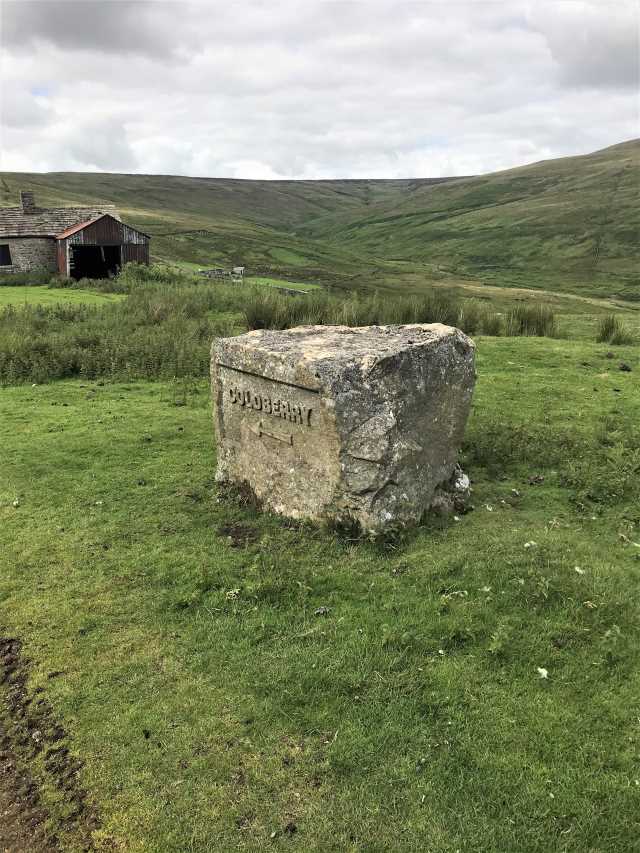 Image of Coldberry Mine waymarker, 2020. Image taken from south. Emma Watson 11-Jul-2020