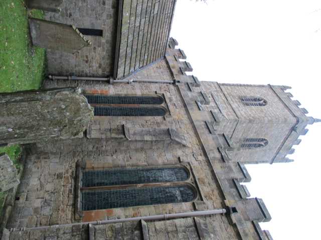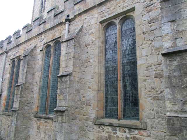 The wall of All Saints' Church, Durham Road, Lanchester © DCC 2016