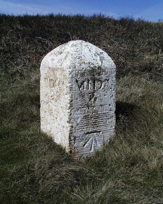 This milepost is a Listed Building protected by law. These were commonly erected, sometimes specifically stated to be erected by law, as part of the road systems such as turnpikes. Details in this case are given for Middleton - which was too long to fit on comfortably so was abbreviated to MIDN.