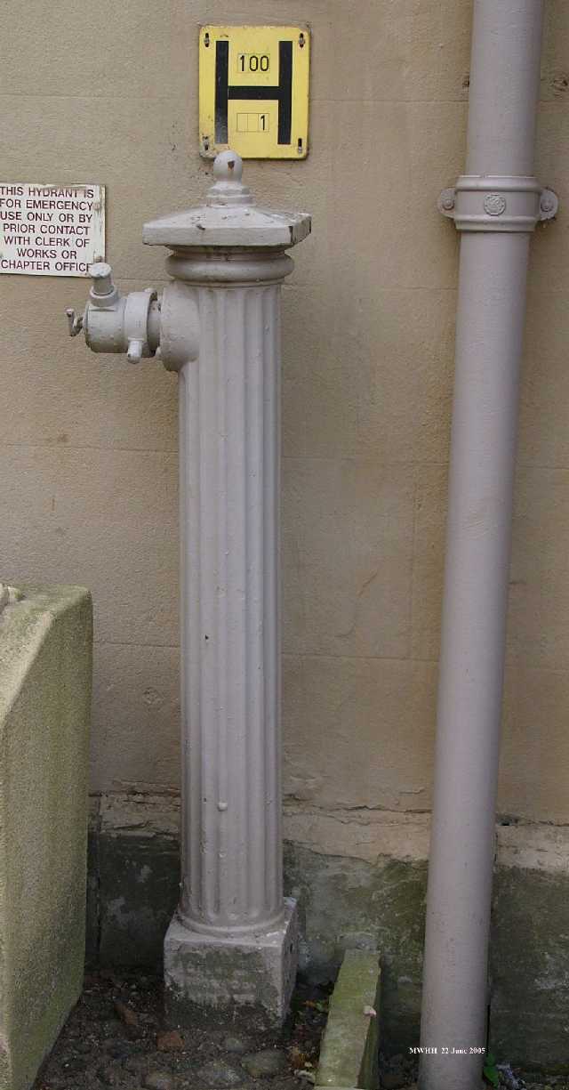 This is an early 19th century cast iron water hydrant in fron of 12 The College. It is a Grade II Listed Building protected by law.
