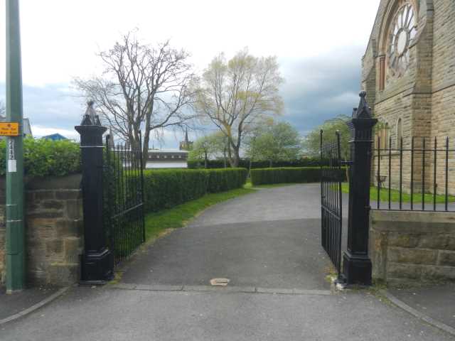 Gate of St. Joseph's RC Church, Thorneyholme Terrace, Stanley 2016