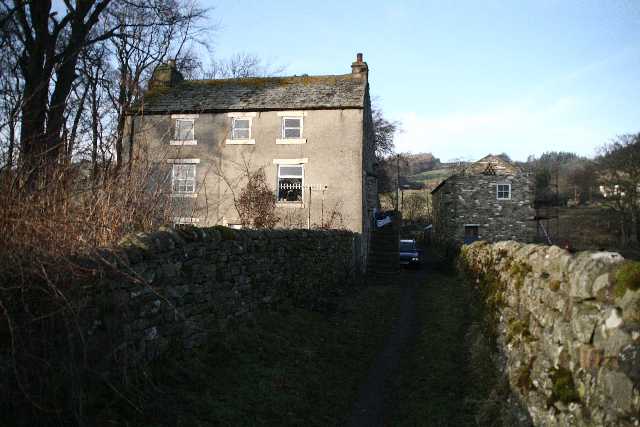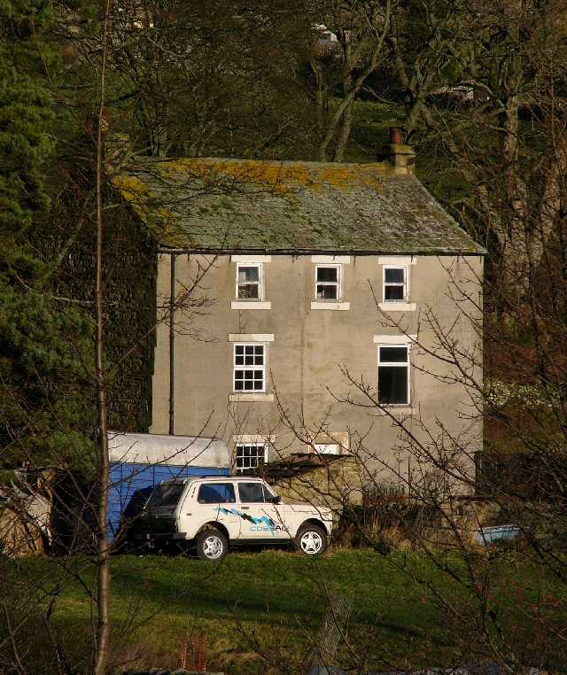 It is a three-storey building of coursed rubble, its south front rendered. The main body is of two broad bays; it faces south. The character of its fabric and the two ground-level doorways points to a date no earlier than the mid-18th century, and it is probably best classed a byre house, a late example of the upstairs-living tradition, of a type more commonly seen around Alston. (1)