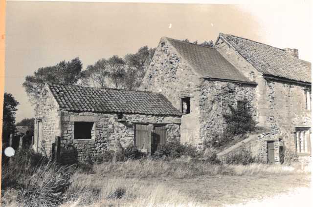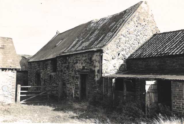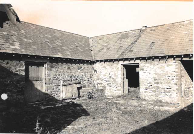 View of central 1 storey block of farm byres built in the 18th and 19th century. Unknown