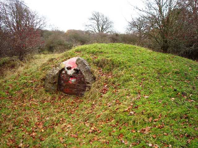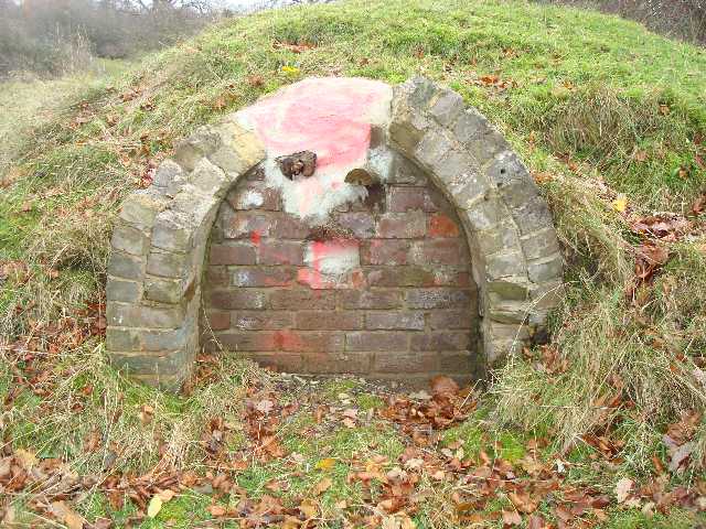 This building is purposefully concealed by being constructed into a bank. It is a icehouse; something common in the estate grounds of larger country houses. It is a Listed Building.