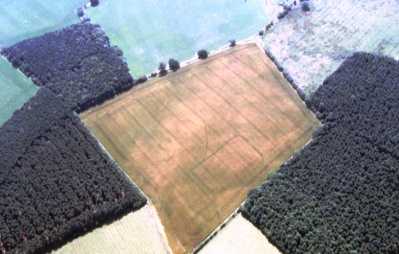 An aerial photograph of this site shows the cropmarks of a roughly sub-rectangular enclosure surrounded by a ditch. It is probably prehistoric in date, possibly an Iron Age or Romano-British enclosed settlement which overlies an earlier settlement or a field system.