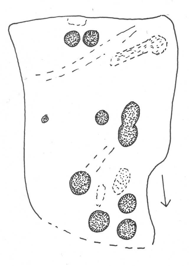 Illustration of multiple cup markings on a boulder on Barningham Moor 1980-1997