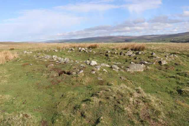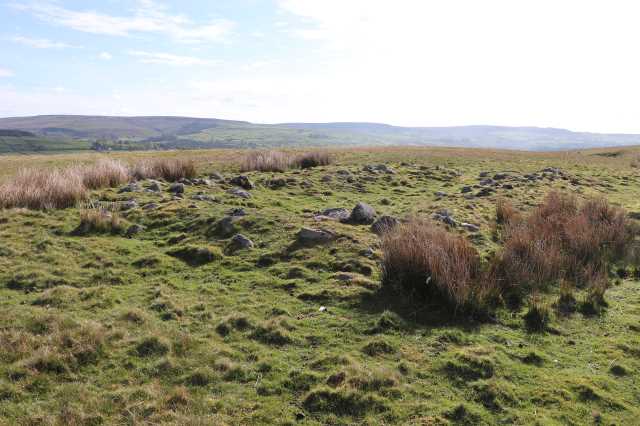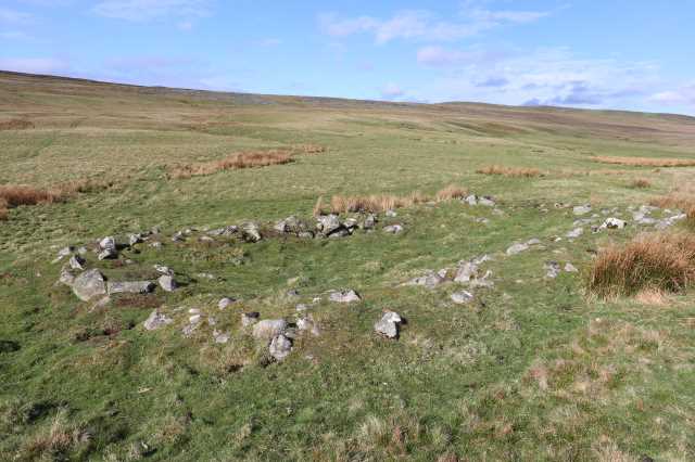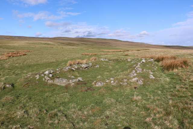 There are the remains of two Early Medieval houses at this site. They are associated with a field system and its associated [boundary] walls. These are Scheduled Ancient Monuments, protected by law (1).